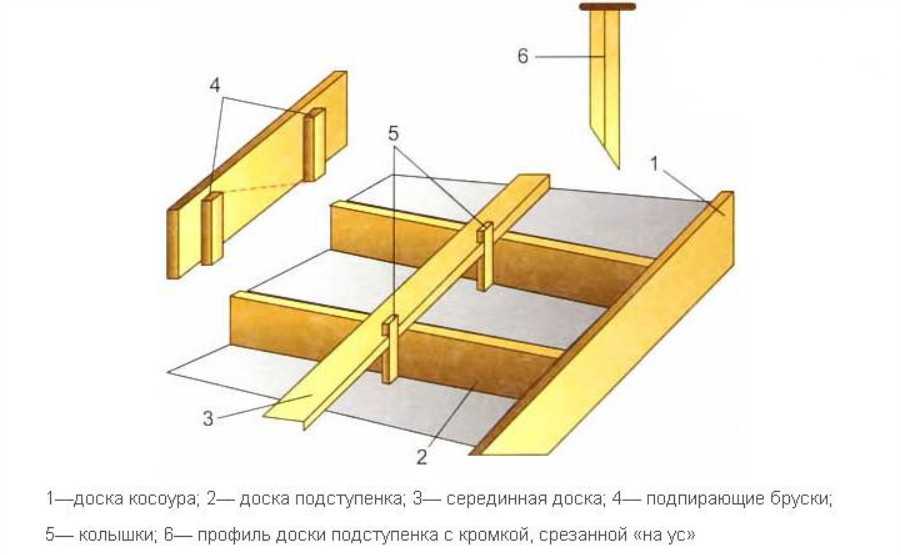 - 2 – деревянный элемент, соединяющий ступени.