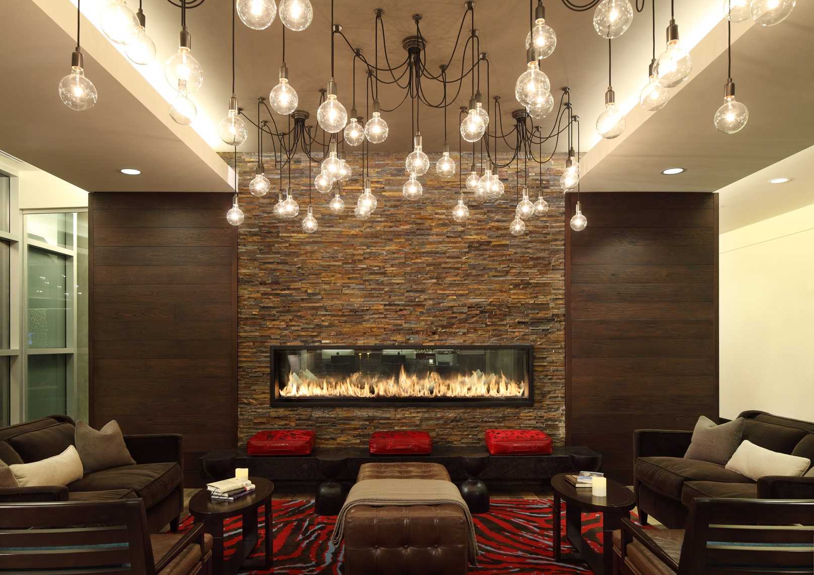 - люстры в индустриальном стиле, напоминающие промышленные приборы — неправильной оригинальной формы, грубой окраски или вовсе собранные из отдельных ламп без абажура;