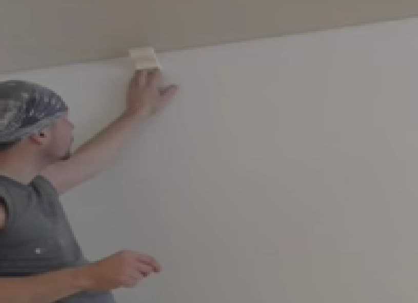 Шаг 2. Сделайте разметку, чтобы избежать заваливания плинтуса ниже или выше необходимого уровня, если потолок натяжной. Отрежьте небольшой кусочек багета и приложить его к стене так, чтобы он на пару миллиметров не доходил до потолка.