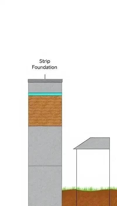 Ленточный фундамент внешне напоминает бетонные ленты, погружённые в почву, образуя по периметру строения бетонную ленту с внутренними перемычками. Он универсален для большинства домов, включая строения из камня, кирпича или газоблоков, и может быть как мелкозаглубленным для легких конструкций, так и глубокозаглубленным. При его устройстве особое внимание уделите углам, которые традиционно являются самым слабым местом ленточного фундамента. Требует больше средств и материалов, чем столбчатый, но позволяет обустроить подвал.