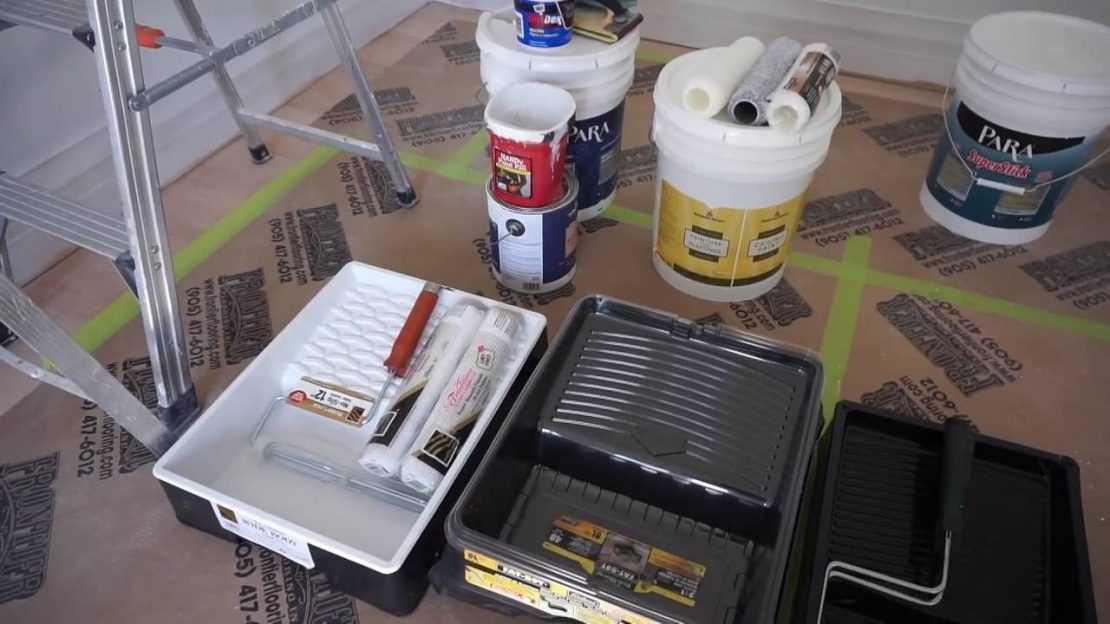 Работы будут проводиться на высоте, потому потребуется прочная опора – лучше стол с большой поверхностью, где можно расставить все предметы и материалы. А вот валики и кисти следует выбирать с длинной ручкой.