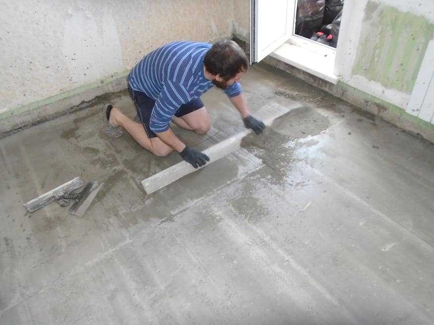 Для удобства укладка стяжки начинается от дальнего угла по отношению к входу.