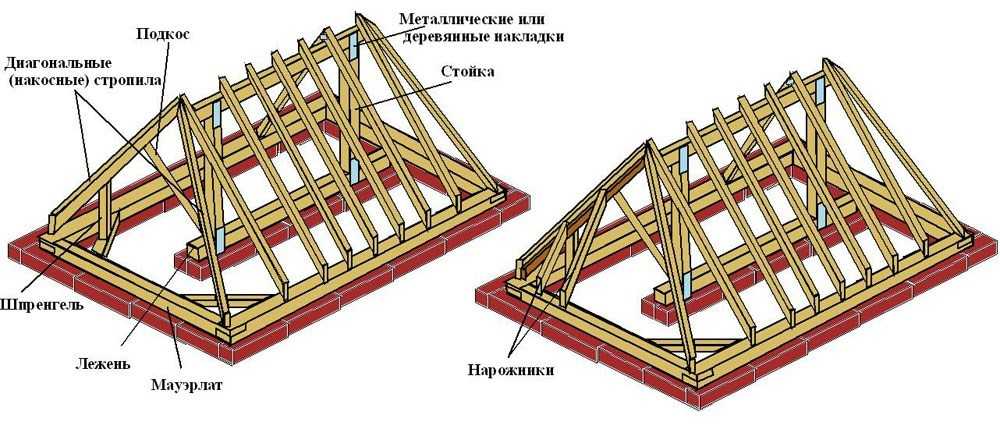 - диагональные или накосные стропила, установленные по углам основного каркаса;