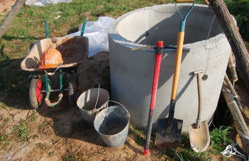 С использованием железобетонных колец процедура копания колодца выглядит следующим образом: кольцо устанавливается на выбранный участок, после чего внутри него по всему сечению производится выборка грунта. Под действием силы гравитации бетонное кольцо опускается вниз. Затем на него ставится второе кольцо и так далее, пока шахта колодца не достигнет водоносного слоя.