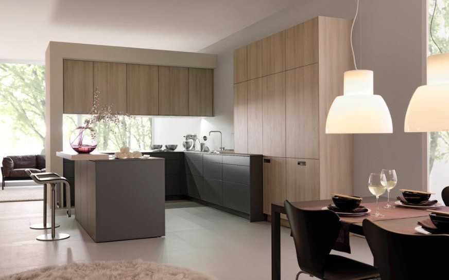 Дерево активно используется при создании кухонных фасадов. Технологии, применяемые при обработке материала, способствуют долгому сроку эксплуатации деревянных гарнитуров, натуральная древесина устойчива к различному режиму влажности и температуры. Для дизайна обычно выбирают классический стиль с определенным декором. Однако лаконичный современный стиль деревянных кухонь также достаточно популярен.