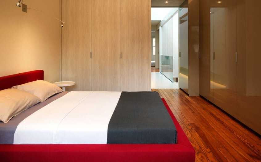 Мебельный гарнитур темных оттенков используют в стиле хай-тек. Классика жанра – это нежно-голубые, кремовые тумбы, кровати и шкафы. Чтобы удачно сочетать мебель с общим декором, выбирайте ее на несколько оттенков светлее пола. Громоздкие шкафы будет выглядеть визуально меньше, если они изготовлены из выбеленного материала.
