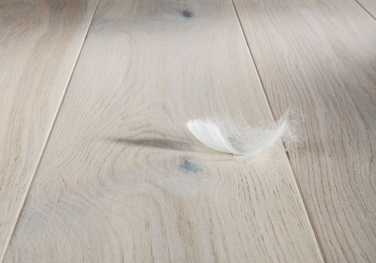 Пол из беленого дуба в интерьере отличается красотой, но не практичностью. Чаще покупатели предпочитают более дешевые материалы с имитацией дуба, полностью копирующие цвет и текстуру благородного дерева.