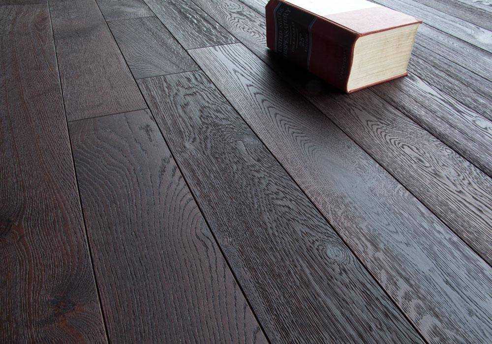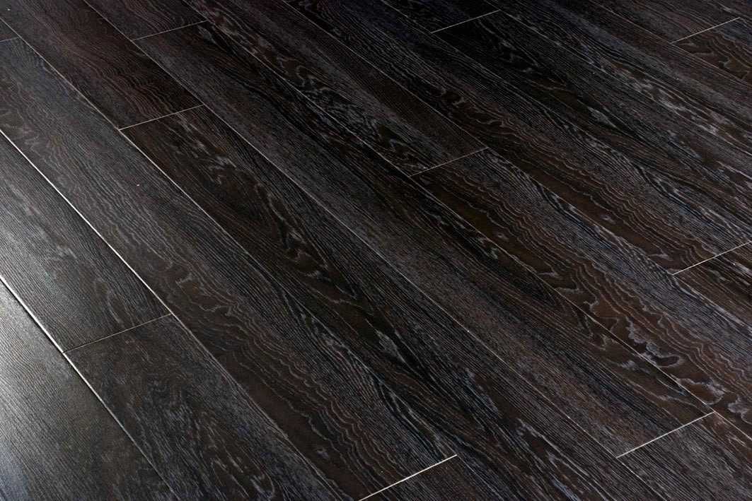 Процесс искусственного морения также позволяет добиться черных и дымчатых оттенков. Именно потому столь популярны паркеты и ламинат в черных и серых тонах, способные внести в интерьер нотки вековой роскоши и стильные мазки технологичной современности.