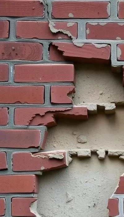 Разрушение кирпичной кладки: Поврежденные кирпичи удаляются, а на их место устанавливаются новые, подобранные по цвету и фактуре. Швы заполняются специальным раствором для кирпичной кладки.