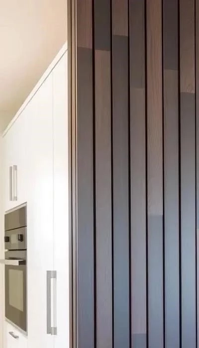 Деревянные рейки гармонично сочетаются с бетоном, кирпичом, стеклом и металлом. Дерево и бетон создают индустриальный шик, дерево и стекло – легкость, а металл добавляет современности. Экспериментируйте с текстурами и фактурами для уникального дизайна!