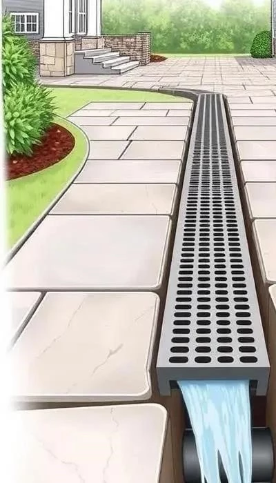 Линейный дренаж: Используется для отвода поверхностных вод с больших площадей, например, с дорожек и площадок. Состоит из водоприемных лотков и каналов.