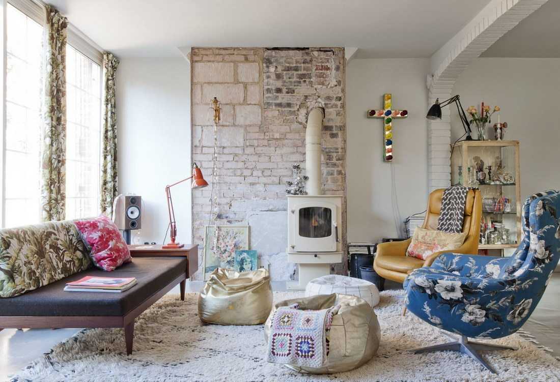Оформление гостиной в стиле прованс до сих пор несет в себе отпечатки южных стран. Легкий оттенок старины в сочетании с романтикой позволяет создать действительно удивительный интерьер. Отделка камина в данном случае преимущественно выполнена в виде открытого кирпича. Кроме того в таком помещении всегда есть много деталей с цветочным принтом. Чаще всего стиль прованс используется для загородного дома или дачи, а в городских квартирах его реализуют крайне редко.