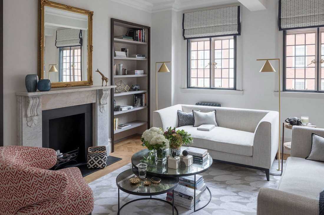 Камин станет центральным элементом кухни-гостиной в стиле арт-деко