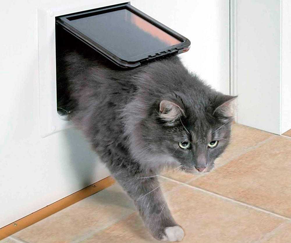 Наибольшей практичностью характеризуется дверца для кошки. Большой ассортимент готовых изделий представлен в специализированных магазинах. Здесь можно приобрести не только оптимальную по цвету конструкцию, но и выбрать подходящий размер в соответствии с породой питомца.