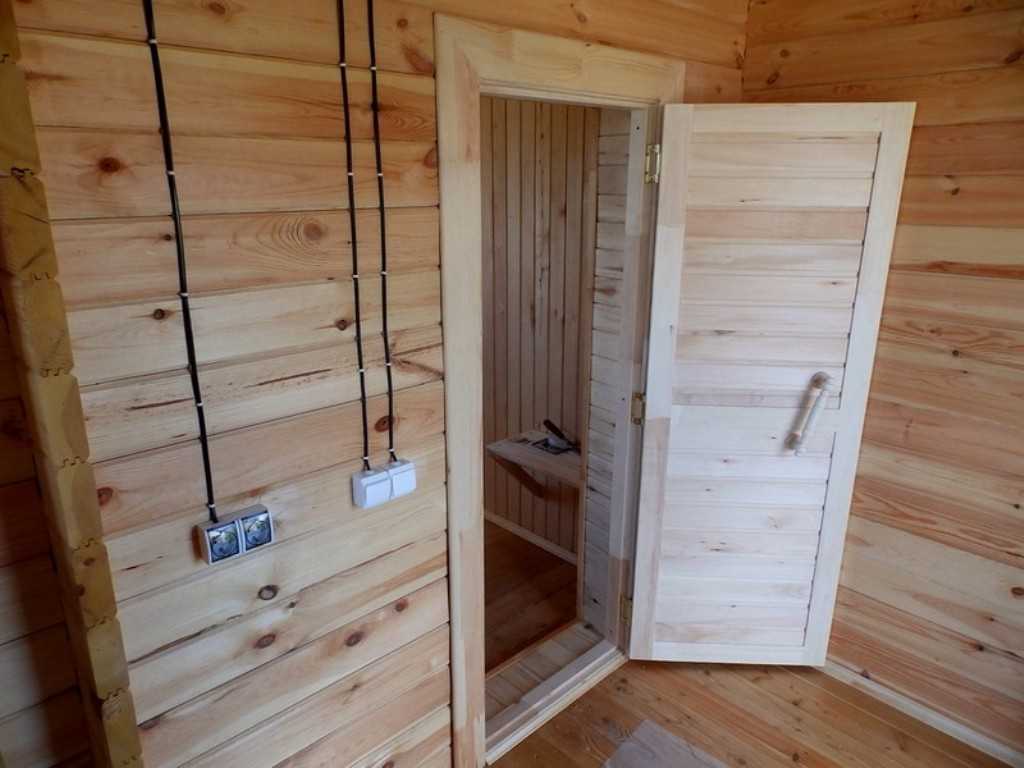Закупившись материалом и нужными инструментами, можно начать работу. В первую очередь, делают входные банные двери. Размер — 700 на 1800 мм. Прежде, чем приступить, нужно пройтись по липе антисептиком или лаком: так она станет устойчивой перед насекомыми и грибками.
