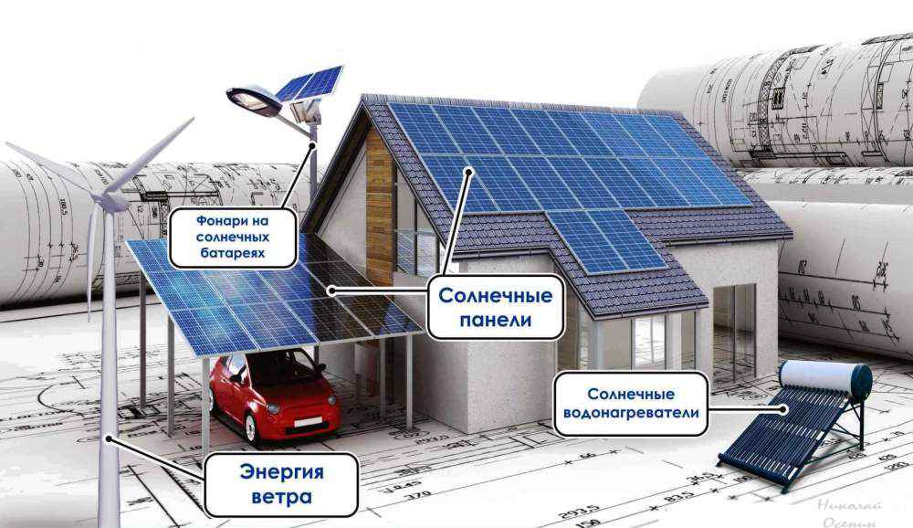 Для сбора и преобразования энергии солнца используются солнечные батареи на фотоэлектрических преобразователях и коллекторы, представляющие собой систему трубок, наполненных теплоносителем.