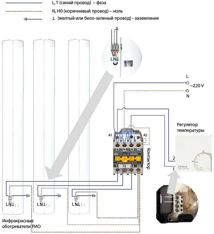 Схема подключения трех и более инфракрасных обогревателей потолочного типа