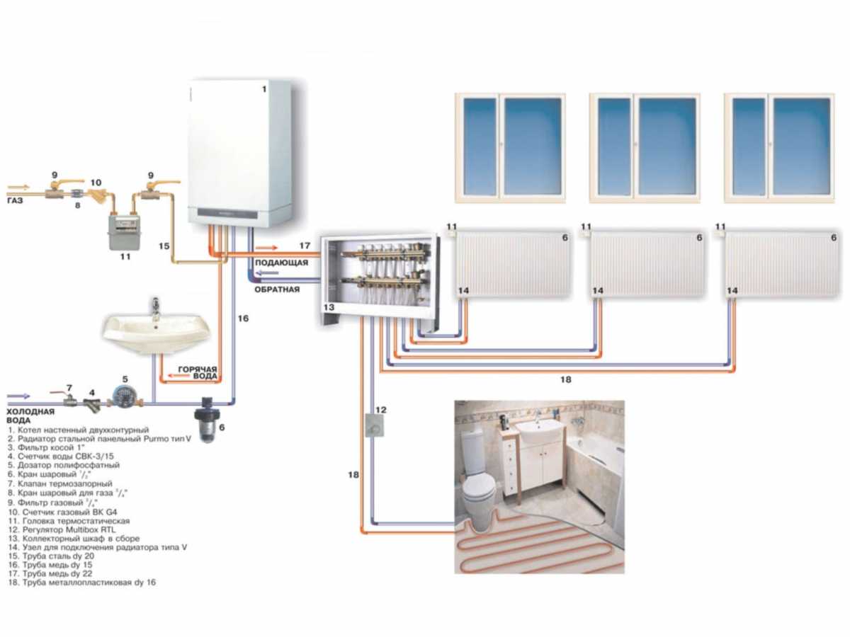 Коллекторная схема отопления одноэтажного дома с принудительной циркуляцией