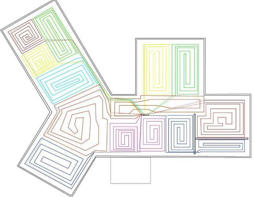 Укладка труб водяного теплого пола по спиральной схеме снижает гидравлическое сопротивление