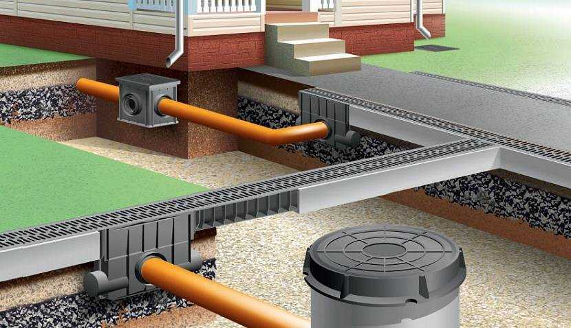 В коллектор можно отвести и воды, собранные поверхностным водоотводом, а оттуда они попадут в коммунальную ливневую канализацию или впитаются в почву (через дренажное поле – слой щебня).