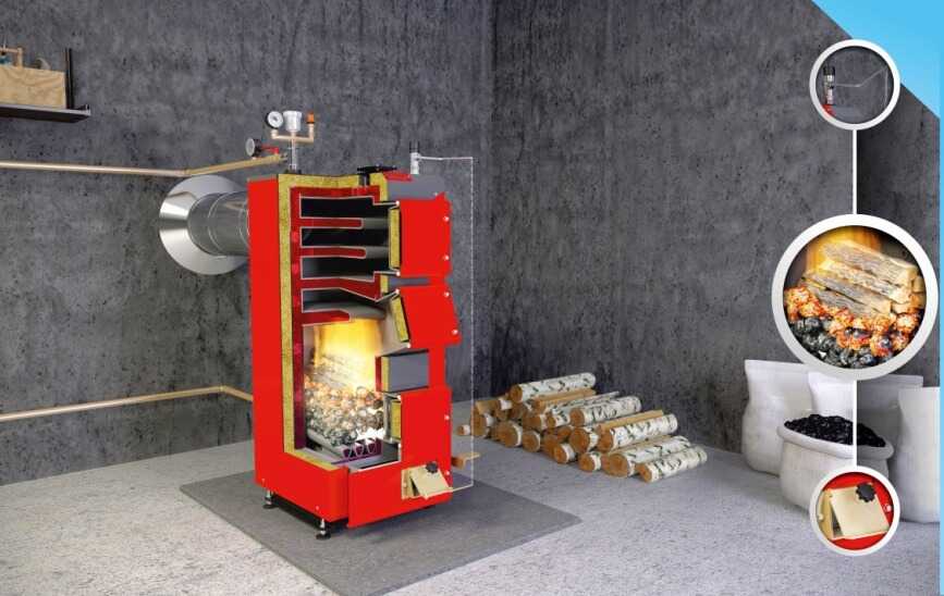 Работают такие агрегаты на любом твердом топливе. Они мало эффективны, поскольку не имеют развитых поверхностей нагрева. Это приводит к тому, что в них большие потери тепла с уходящими газами, порядка до 20 %.