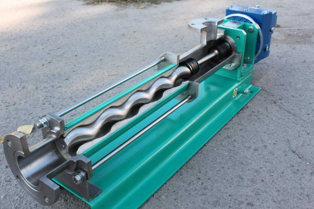 Несмотря на небольшие размеры, максимальная производительность составляет 1,8 м3//ч, а напор — 90 метров. Шланг опускают в скважину на заданную глубину, соединяют гибкий вал с валом редуктора электродвигателя. Достоинство насоса состоит в том, что электродвигатель находится наверху. В случае засорения насоса отсоединяют гибкий вал, вытаскивают шланг, промывают.