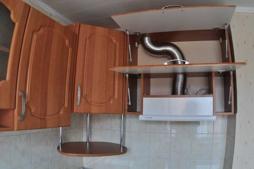 - подвесная – самый распространенный вариант, закрепляется над газовой плитой в пространстве между кухонными шкафчиками;