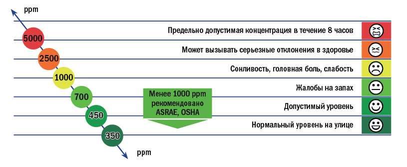 Концентрация co2 в воздухе и его влияние на самочувствие человекаИсточник 7lestnic.com