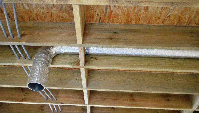 Вытяжная труба прокладывается под потолком в процессе возведения домаИсточник zen.yandex.ru