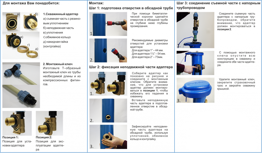 Инструкция по установке адаптера в пластиковую обсадную трубу