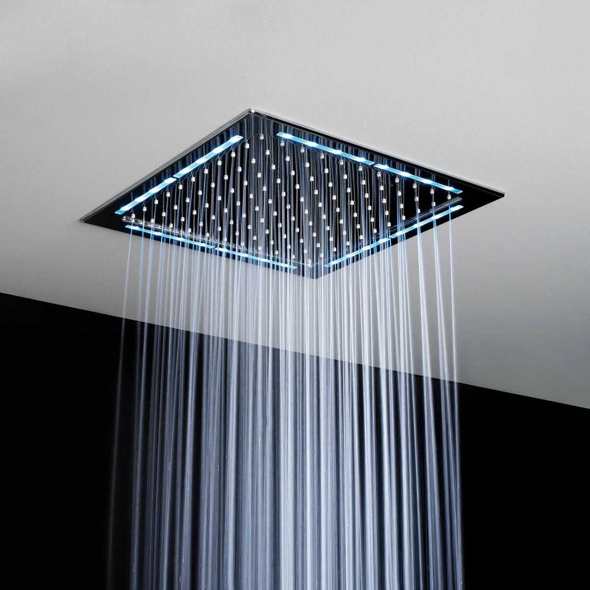 Сегодня лейки для душа из серии «тропический дождь» являются самым популярным видом душевой системы. Такой тип устройств оснащен множеством мелких форсунок, благодаря которым создается эффект проливного дождя. Для этого конструкции подвешивают непосредственно к потолку, а коммуникации прячут в штробах.
