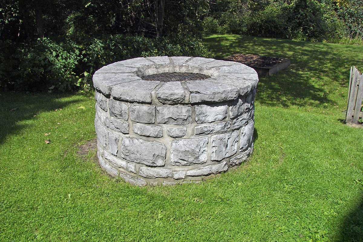 Важно оформить все максимально естественно и натурально. Хорошо смотрится декоративный колодец, вокруг которого посажена газонная трава, низкорослые кустарники, вьющиеся растения, как показано на фото