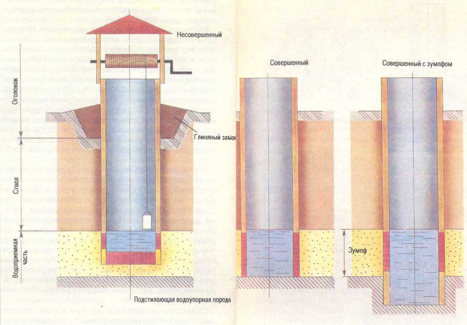 Для создания полных конструкций обязательно создание зумпфа, которые обеспечит регулярное поступление воды в шахту, а в засушливый период позволит поддерживать на стабильном уровне баланс воды. Наиболее практично сделать каменный колодец либо конструкцию с бетонными кольцами.