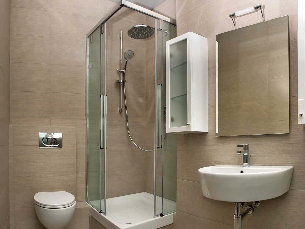 Если ваша ванная комната не впечатляет своими размерами, то наиболее оптимальным будет купить угловую душевую кабину с формой поддона четверть круга, и размерами сторон от 80×80 до 100×100 см. При этом лучше всего чтобы в моделе были дверцы раздвижного типа.