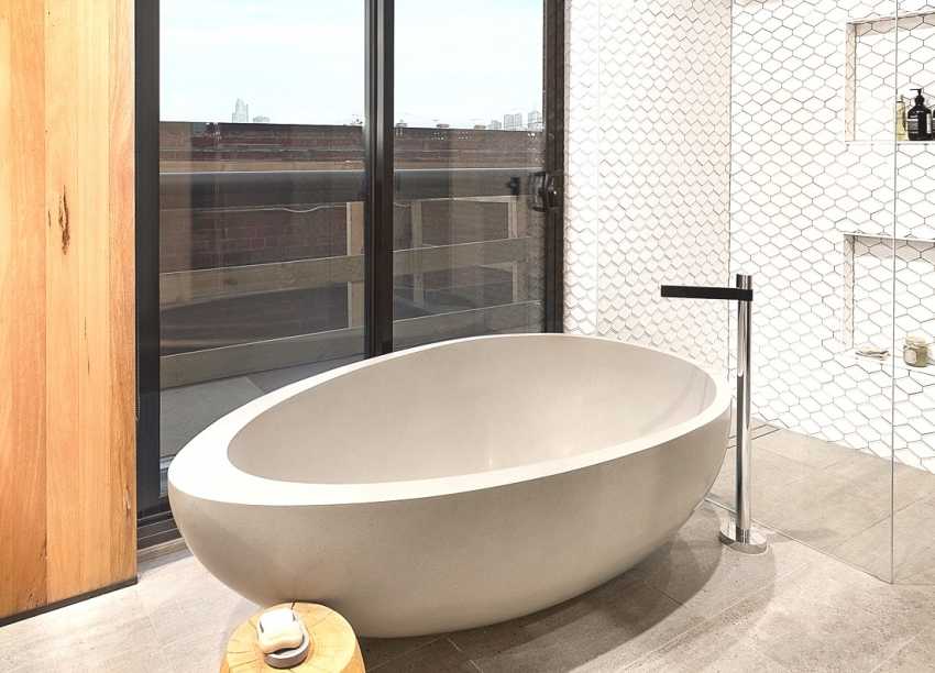 Отдельно стоящая ванна отличается от классического аналога рядом нюансов. Например, это инженерные особенности, о которых задумываются на этапе создания дизайн-проекта. Устанавливают такую ванну возле стены (не вплотную) либо в центре ванной комнаты. Отличает отдельно стоящую ванну доступ со всех сторон.