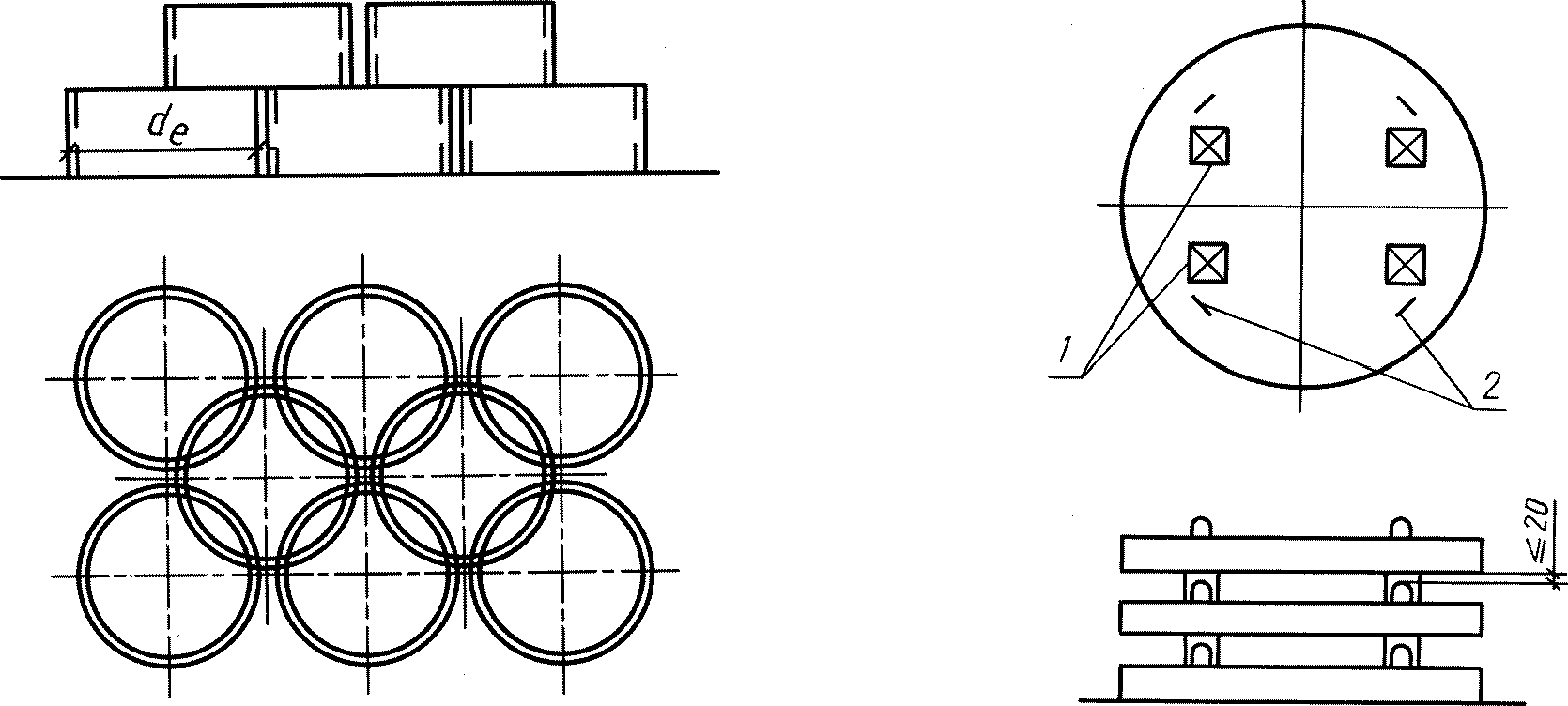 — опорные кольца и плиты — не более чем в шесть рядов по высоте на прокладках (подкладках) в соответствии со схемой, приведенной на черт. 2.