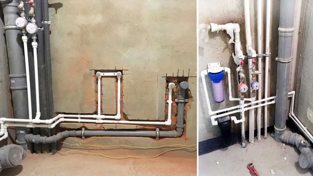 От основной трубы делают отводки к сантехнике, потом при помощи тройников ветки ведут к точкам подключения.