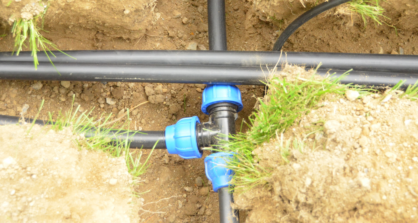 Полив может осуществляться с помощью оросительной системы или шланга. В местах соединения трубопровода и центральной магистрали монтируют вентиль или вводный кран. Трубы, изготовленные из полиэтилена низкого давления, соединяют с вводным краном муфтой. Она находится на внешней и внутренней стороне – это зависит от места расположения резьбы. После закрепления соединения монтируют кусок трубы со шлангом и тройник.
