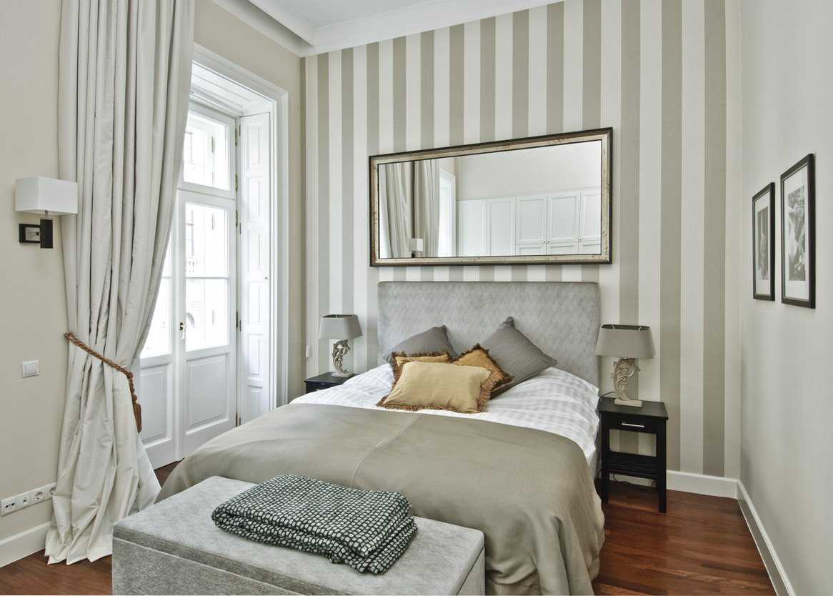 В обоих случаях приходится чем-то жертвовать: либо высотой потолка, либо шириной комнаты. Первый вариант подходит для маленьких комнат с высокими потолками. Он помогает справиться с так называемым эффектом колодца. Горизонтальное разделение обычно осуществляется на высоте 0,5- 0,7 м от пола. Полосу можно «подогнать» под какой-то крупный объект мебели. К примеру, спинка дивана, изголовье кровати или обеденный стол. В комнатах с окнами ориентируются на высоту подоконников. Вертикальное деление потолок визуально поднимает. Комбинируют обычно два вида обоев, которые отличаются по цвету и фактуре. Вариантов сочетания встречается масса: симметричное, асимметричное, узкие полоски с широкими двойными или даже тройными. Если нужно совсем стереть границу между ним и стеной, одна из полос обоев «заходит» на потолок, делая угол между поверхностями неприметным.