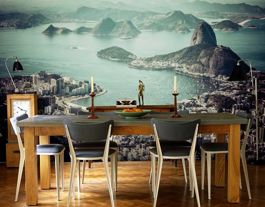 В просторных кухнях фотообоями можно украсить обеденную зону