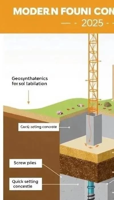 В 2025 году строительство фундаментов преобразится! Геосинтетические материалы, быстротвердеющий бетон и винтовые сваи – ключевые тренды. 3D-печать фундаментов – инновация будущего!