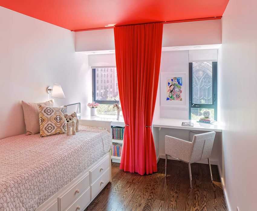 Разграничение пространства актуально для помещений любого размера. Удачный прием – зонирование с помощью оформления окон. Для этого проемы должны находиться на противоположных стенах комнаты. Участки возле них имеют свою отделку поверхностей и особенную мебель. Оконный текстиль также должен отличаться и гармонировать с зоной.