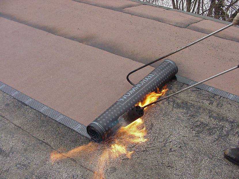 Материал от технониколь разогревается с помощью газовой горелки и прикладывается к поверхности. В этом случае наплавление обеспечивает высокую герметичность соединения.