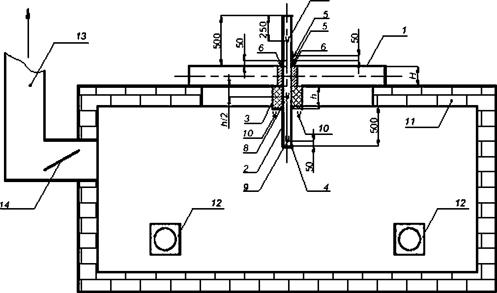 11 — лечь; 12 — форсунка: 13 — дымоход: 14 — заслонка, все размеры на схеме указанны в мы