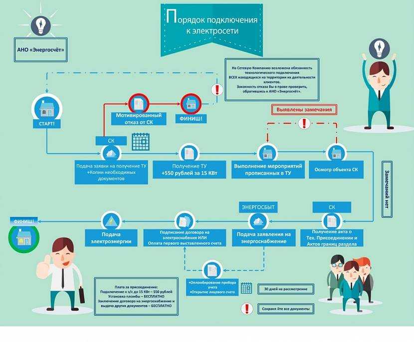 В конце провести расчет расстояния до ближайшей точки подключения найденной сети. Имея в окрестностях подходящую сеть и данные расчеты можно приступить к изготовлению заявления на подключения участка и отправляться за разрешением на подключение электричества к организации, которая отвечает за ваш сектор.