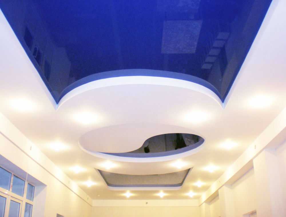 Больше возможностей «поиграть» с освещением предоставляет использование натяжной конструкции, однако специалист должен обратить внимание на виды и типы осветительных приборов — материал ПВХ восприимчив к высоким температурам. Если в квартире высота потолка не превышает 2,5 м – то лучшим вариантом будет установка натяжной потолочной конструкции