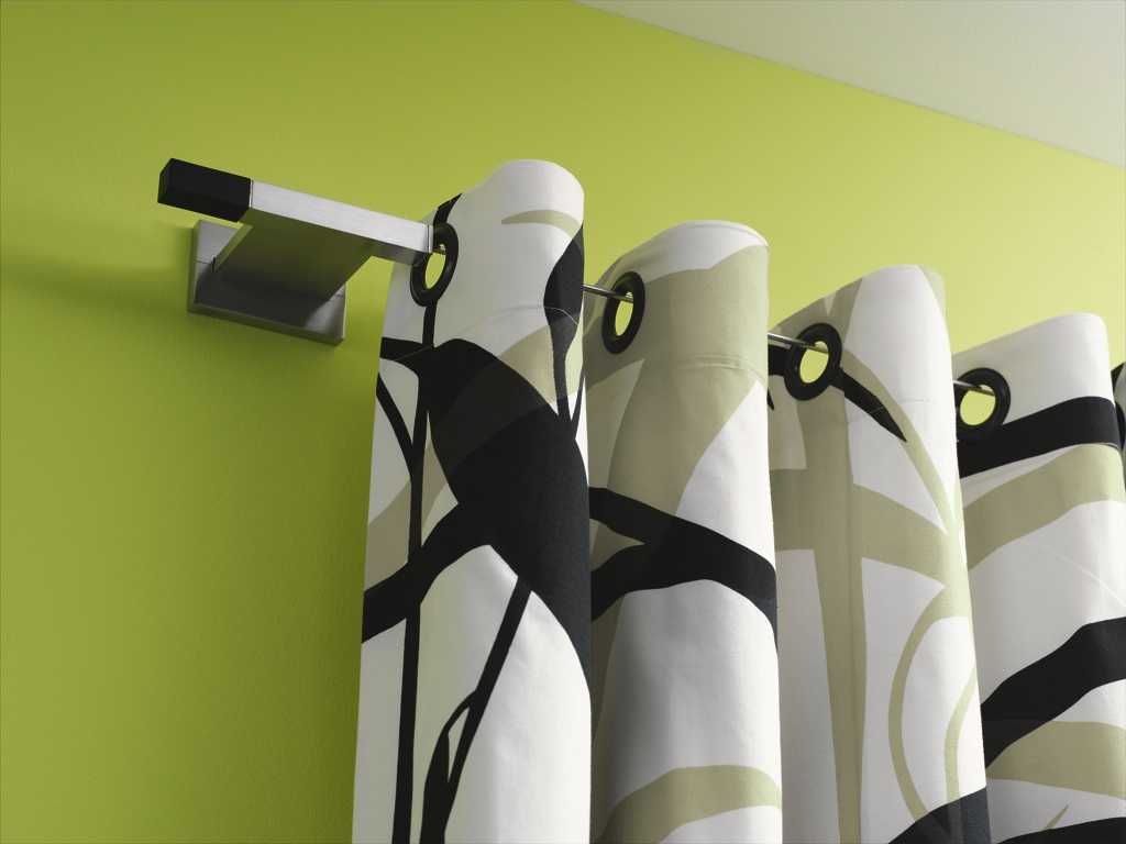 - Когда дюбели зафиксированы, на них вешают кронштейны и фиксируют их; на них устанавливают карниз, не забыв предварительно насадить на него кольца с прищепками.