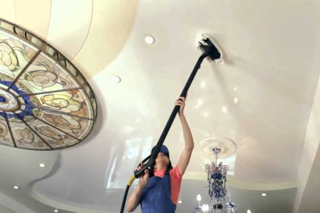 При сильных загрязнениях натяжного потолка придется принимать более серьезные меры. Если потолок после ремонтных работ сильно покрылся пылью, то для его чистки используют пылесос с мягкой насадкой-щеткой.