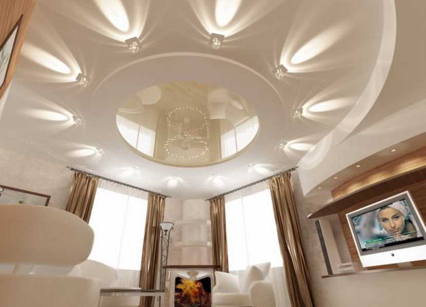 В процессе монтажа многоуровневого натяжного потолка можно устанавливать следующие виды дополнительного освещения: