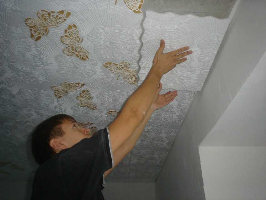 Популярный материал для отделки потолка, который во многом похож на покраску, однако требует больших усилий для установки. Под обои необходимо тщательно выравнивать поверхность